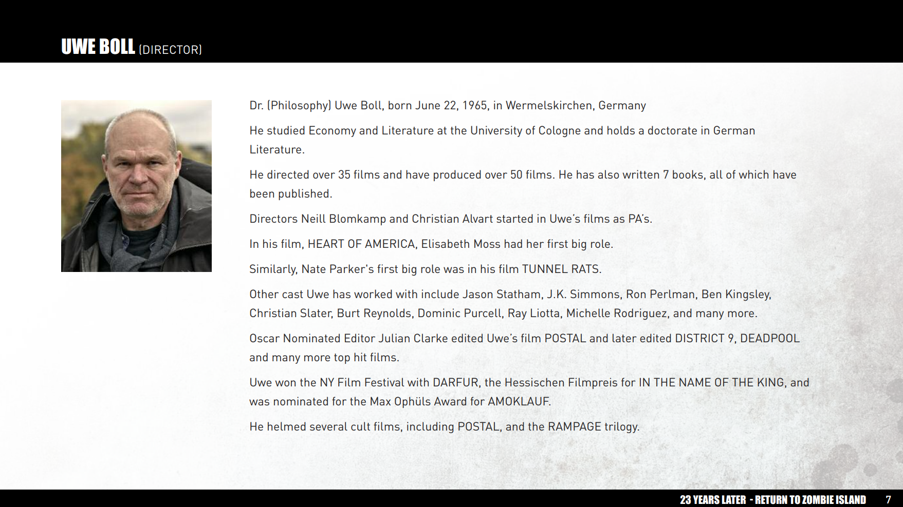 70 Euro: Mediabook (Blu-Ray & DVD) von 23 Years Later unterschrieben von Uwe Boll und dem ganzen Cast 150 Euro: Original Foto vom Filmset! Nur du bekommst es! Unterschrieben von Uwe Boll und dem ganzen Cast. Mediabook ist ebenso inkludiert und du wirst im Abspann genannt!