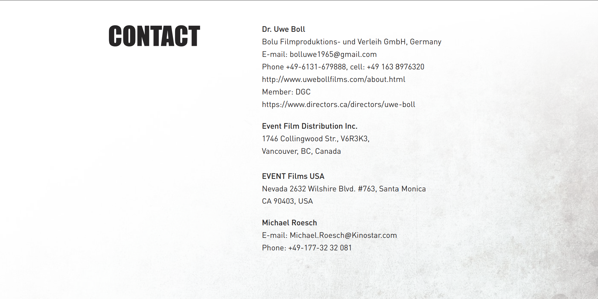Since 2005, Boll has been active in global film distribution. To support this, he founded Boll AG in Germany, which was listed on the stock exchange in 2006, and Event Film Distribution Inc. in Canada. Boll markets not only the international film rights to his own productions but also films from third parties, such as “One Way” with Til Schweiger and the successful Russian film “Prince of Demons” (Viy).